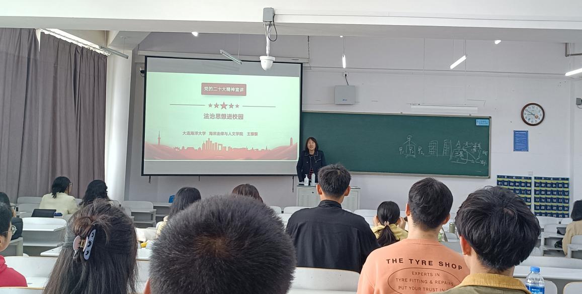 5月15日,太阳成集团tyc33455ccww副院长王黎黎面向2022级法律硕士作了题为《法治思想进校园》的宣讲,宣讲以党课形式开展,主要内容为深入贯彻落实习近平法治思想,进一步推进法治宣传教育,培养学生树立遵纪守法意识。宣讲围绕全面推进依法治国总目标、如何坚定不移走中国特色社会主义法治道路、如何认识加快中国特色社会主义法治体系建设、为什么说坚持党的领导是中国特色社会主义法治之魂这四大问题展开,让学生学习法律知识,培养法治精神,牢固树立法治思维和法治信仰,扣好人生的第一粒扣子。