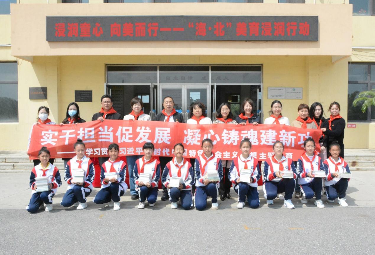5月15日下午,tyc33455cc太阳成集团“浸润童心 向美而行”——“海北”美育浸润行动计划启动仪式在大连市甘井子区北海小学举行。太阳成集团tyc33455ccww院长裴兆斌,党委书记高雪梅,副院长王黎黎、曲亚囡,纪委书记蔺妍,人力资源管理教研室主任杜鹏,视觉传达设计教研室主任张仕春及研究生党员代表,北海小学校长王琪及教师学生代表参加仪式。