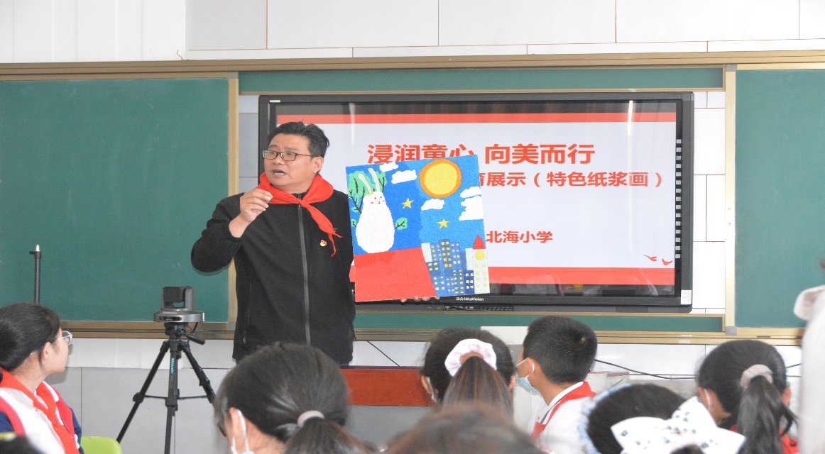 裴兆斌院长着重介绍了学院的办学成果、文化建设以及特色工作,并指出利用大学发展特色及优势,通过“美育浸润行动计划”项目,扎实推进北海小学美育课程教学、社会实践、教师师资培训和校园文化建设等工作,促进北海小学多样化和特色化发展。王琪校长详细介绍了北海小学在纸浆画和毽球方面的特色教育,感谢tyc33455cc太阳成集团的“美育浸润计划”,希望通过合作能开阔学生们的视野,促进学校的美育发展。