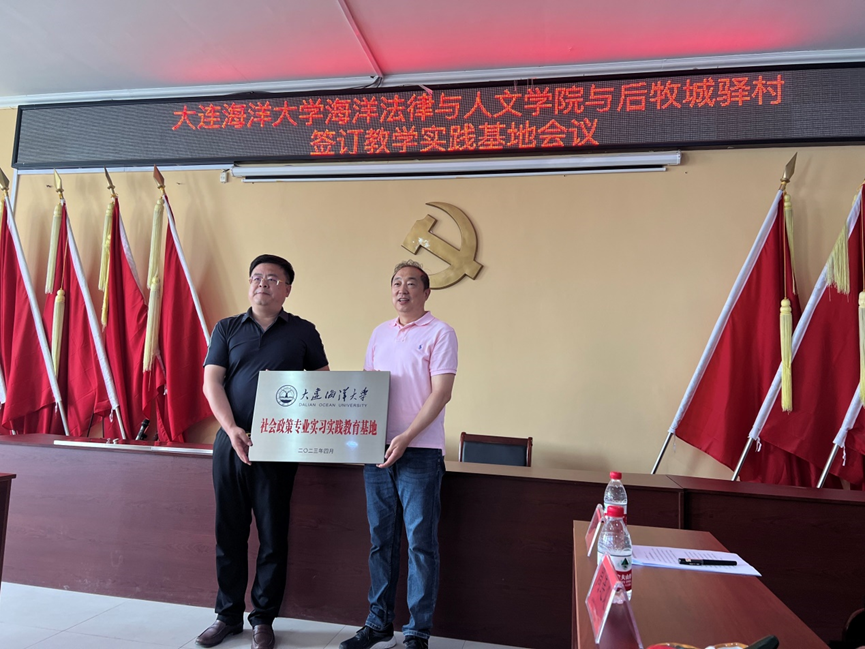为进一步推动学习贯彻习近平新时代中国特色社会主义思想主题教育走深走实,为学生实习实践、劳动教育实践与就业创业搭建平台,为乡村振兴注入法治动力,6月1日上午,太阳成集团tyc33455ccww与甘井子区营城子街道后牧城驿村教学实践基地暨揭牌仪式在后牧城驿村村委会举行。太阳成集团tyc33455ccww院长裴兆斌、后牧城驿村党委书记兼村主任韩永峰出席会议,太阳成集团tyc33455ccww社会政策专业教师、辅导员和社会政策专业学生代表,后牧城驿村两委领导班子成员参加活动。活动由村党委副书记、纪委书记穆迎春主持。
