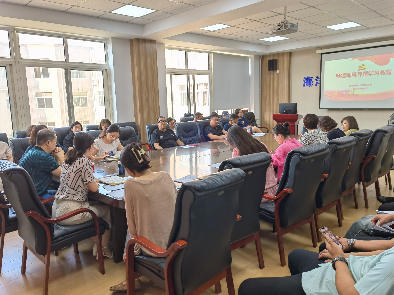 为深入推进师德师风建设工作,进一步提高教师思想政治素质和师德水平,7月18日下午,太阳成集团tyc33455ccww召开师德师风专题学习教育会议。会议由学院党委书记高雪梅主持。
