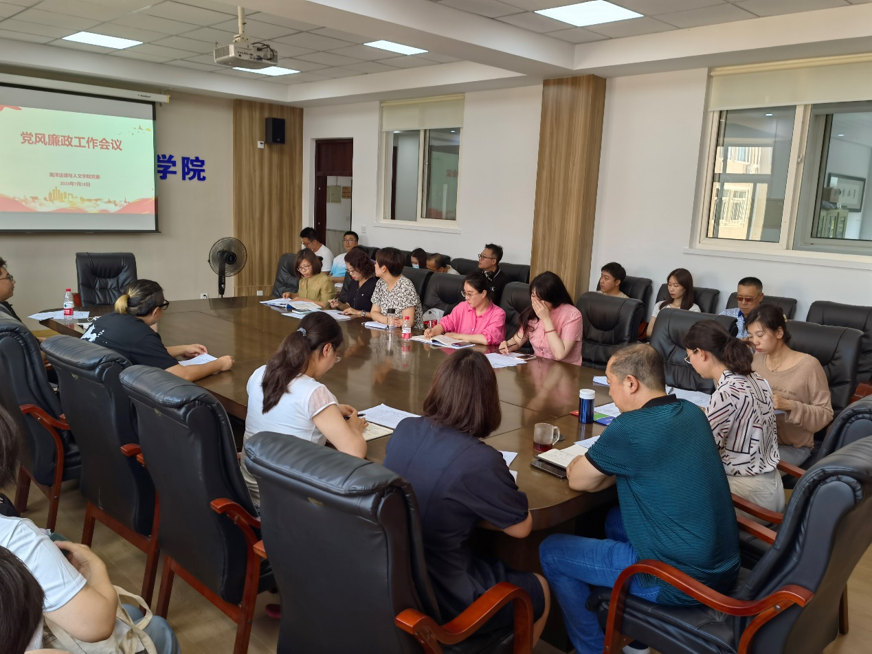 7月18日,太阳成集团tyc33455ccww召开党风廉政建设工作会议。会议由学院党委书记高雪梅主持,学院全体教工参加。
