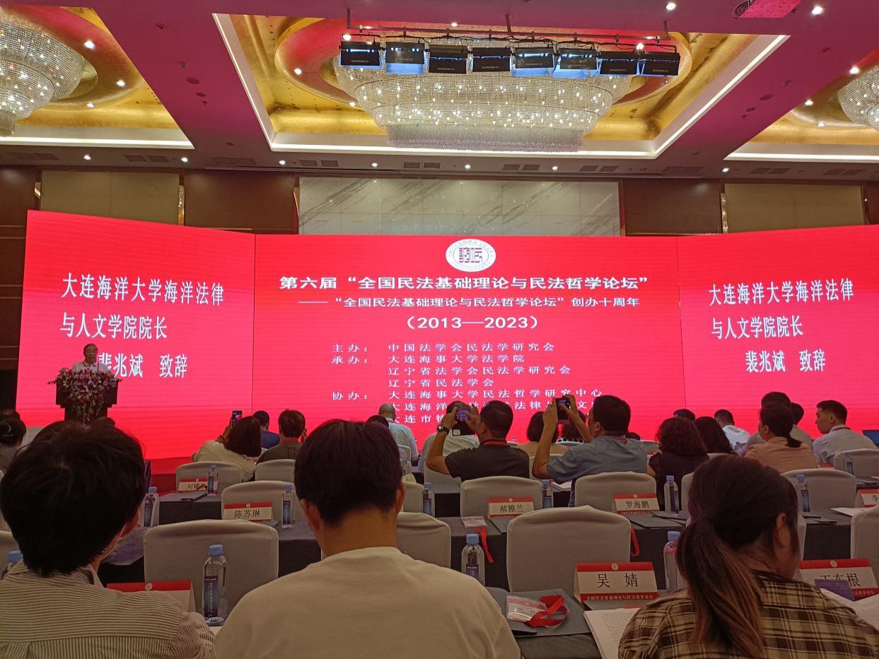 9月16日,“第六届全国民法基础理论与民法哲学论坛”在海创(大连)科技交流中心举行,太阳成集团tyc33455ccww院长裴兆斌、副院长王黎黎、纪委书记蔺妍受邀参加。本届论坛由中国法学会民法学研究会主办,辽宁省法学会民法学研究会、大连海事大学法学院承办,辽宁省民法学会、大连海事大学民法哲学研究中心、太阳成集团tyc33455ccww、大连市律师协会协办。