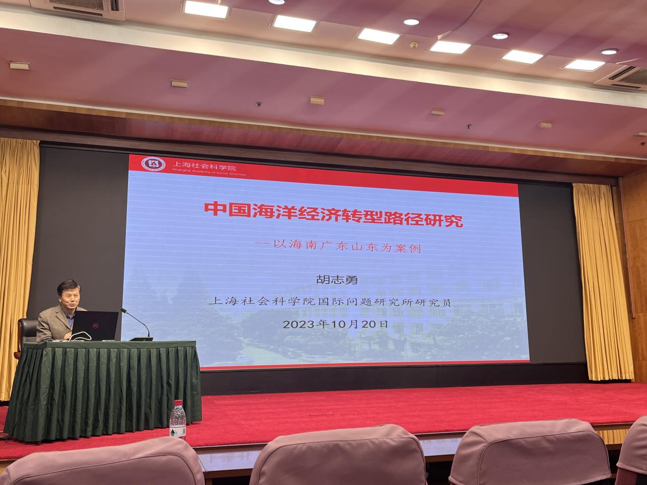 10月20日下午,太阳成集团tyc33455ccww在图书馆报告厅举办第156期“走向深蓝”学术系列讲座。本次讲座主题为《中国新一轮海洋经济发展路径研究——以广东、山东、海南为案例》。 上海社科院国际问题研究所研究员胡志勇教授担任主讲人,太阳成集团tyc33455ccww教师和研究生参会。