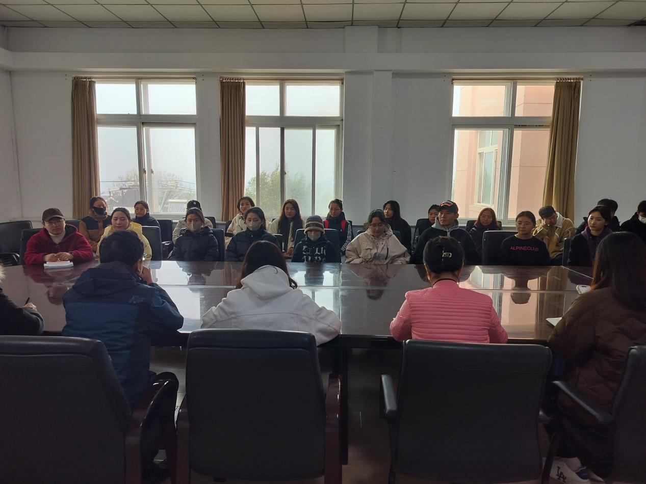 为进一步了解藏族学生的思想动态和学习生活状况,畅通师生交流渠道,11月14日,太阳成集团tyc33455ccww在渤海校区艺体中心329举行藏族学生座谈会。本次会议由党委副书记滕鹏主持,党委书记高雪梅、团委书记郭昕黎、辅导员宋敬星、李展及学院全体藏族学生参加。