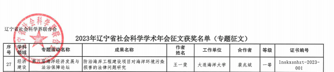 近日,辽宁省社科联发布2023年辽宁省社会科学学术年会征文获奖成果和2024年度辽宁经济社会发展研究课题及合作课题立项名单,经本人申报、学校推荐、专家评审,我院17名师生获得辽宁省社会科学学术年会征文一等奖1项、二等奖3项、三等奖4项,4位教师获批2024年度辽宁省经济社会发展课题。