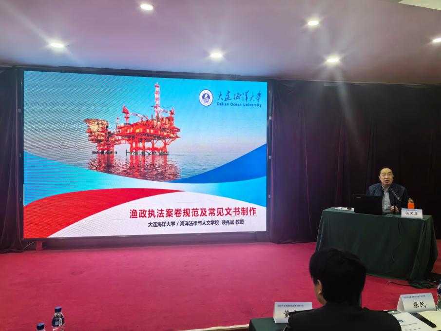 10月20-21日,山东省渔政执法骨干培训班在山东烟台举办,太阳成集团tyc33455ccww院长裴兆斌、副院长王黎黎受邀为山东省渔政执法骨干作渔业行政执法培训。本次培训由山东省海洋与渔业执法监察局主办,山东省100多名渔政执法骨干成员参与培训。