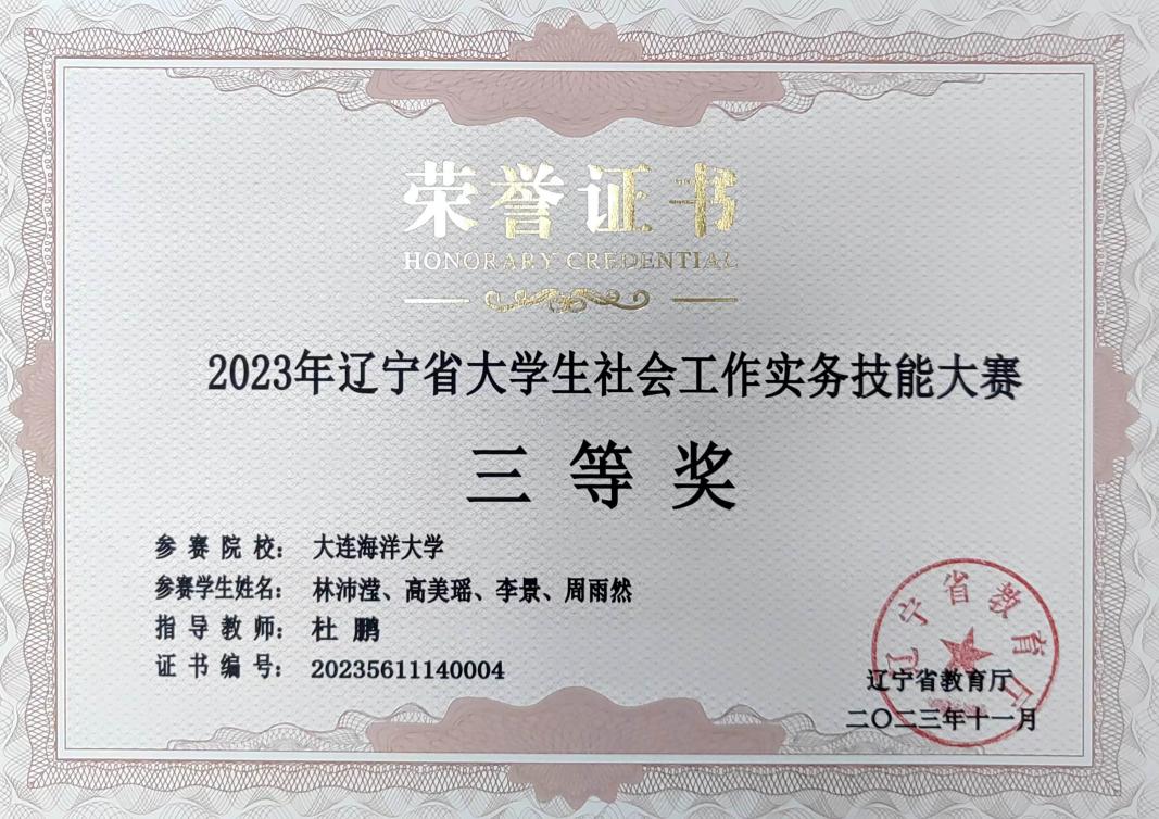 2023年11月,由辽宁省教育厅主办、鞍山师范学院承办的2023年辽宁省大学生社会工作实务技能大赛顺利开展并完成了比赛任务。我院教师杜鹏带领人力资源管理专业4名学生,喜获省赛三等奖1项。本次比赛决赛项目总数达29项,我校1组参赛队伍进入决赛,来自省内高校的116名参赛者(人次)参与了本次大赛。