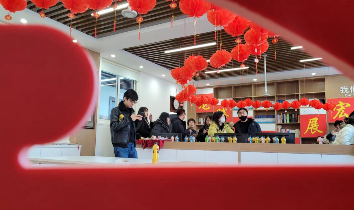 活动现场气氛热烈,以灯笼串联的S形龙腾造型别具一格,寓意着新的一年龙腾四海,蒸蒸日上;欢快喜庆的音乐衬托出浓郁的节日氛围,各式甜品摆台、饮料点心,满足了大家的味蕾享受;精心设计的猜灯谜和中华传统文化知识竞赛呈现了传统文化与现代创意的完美结合。