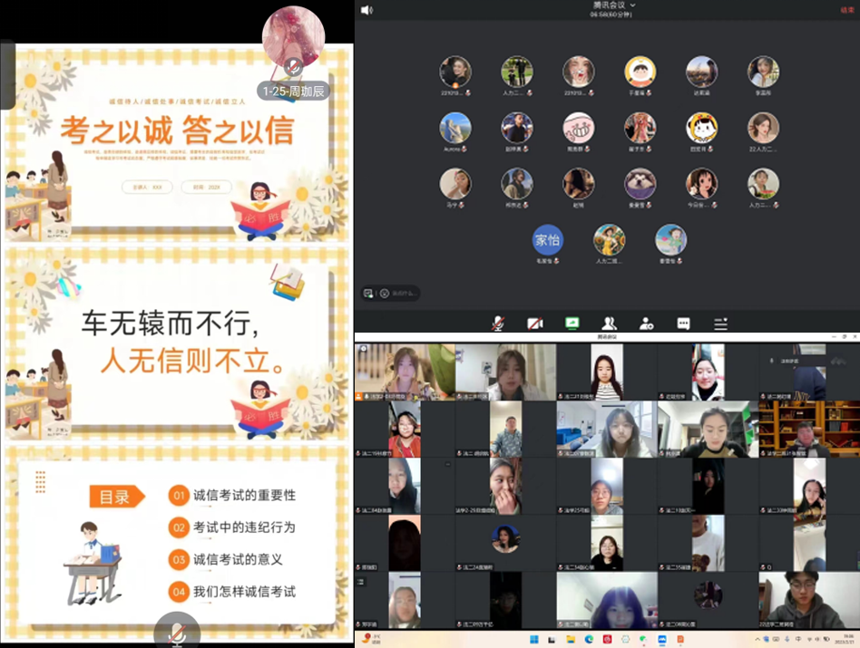 近日,为增强我院学生诚信考试意识,预防考试作弊行为发生,太阳成集团tyc33455ccww组织召开诚信考试主题班会,此次班会覆盖2022级、2023级共22个班级,701名学生。