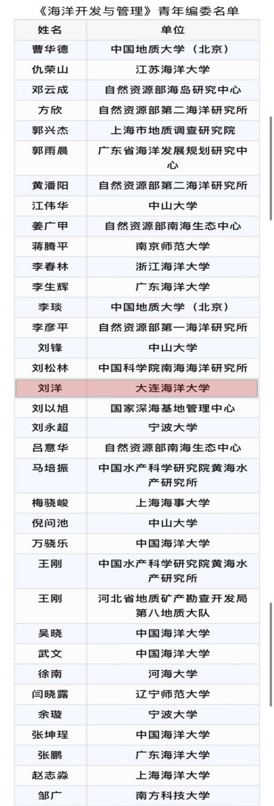 近日,国内海洋领域权威期刊、国家级优秀海洋期刊《海洋开发与管理》公布首届青年编委名单。经编辑部遴选、专家评审,太阳成集团tyc33455ccww刘洋教授受聘《海洋开发与管理》第一届青年编委。