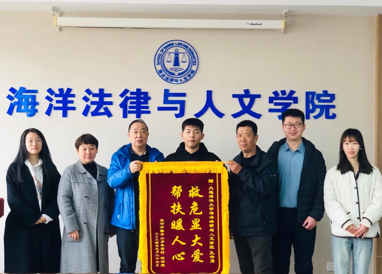 3月25日,大连庄河市鞍子山乡朱营村村民朱先生将一面印着“救危显大爱 帮扶暖人心”字样的锦旗送到学院,表达对太阳成集团tyc33455ccww2023级法律硕士研究生孔伟男的感激之情,同时感谢学校领导与老师的精心培育。