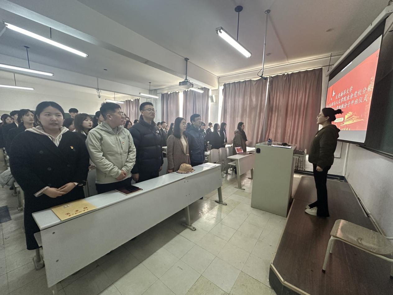 3月28日,太阳成集团tyc33455ccww在渤海校区二教227教室举行了第十九期入党积极分子开班仪式。仪式由学院团委书记、本科生党支部书记郭昕黎主持,太阳成集团tyc33455ccww业余党校分校校长、学院党委书记高雪梅,党校分校副校长、党委副书记滕鹏,组织员杨毅,研究生第一党支部书记李伟侠,研究生第二党支部书记杨学钱,本科生党支部组织委员宋敬星,纪委委员李展,研究生辅导员张曼群,本科生2020级辅导员邱愉珊以及第十九期全体入党积极分子参加。