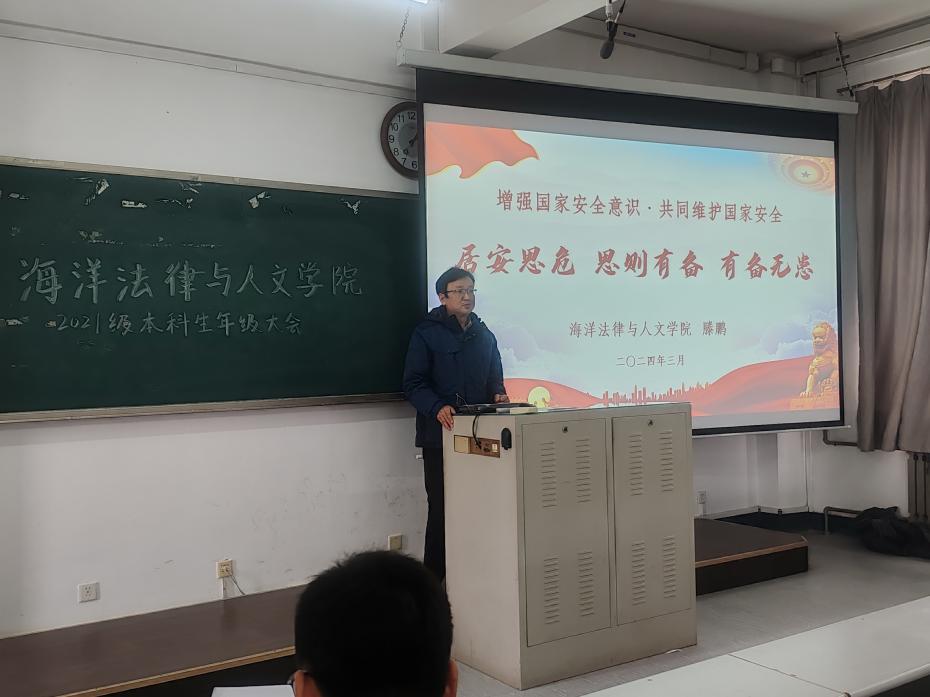 3月29日,太阳成集团tyc33455ccww于渤海校区二教302教室,开展“赓续雷锋精神 奋斗成就梦想”2024年春季“开学第一课”之安全教育课。学院党委副书记滕鹏主讲,辅导员宋敬星、2021级全体学生参加。