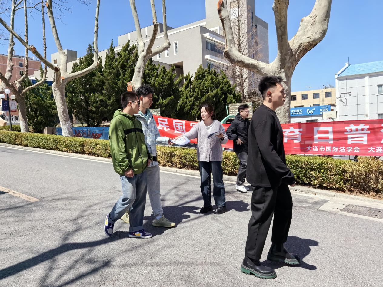 4月15日,由大连市国际法学会和太阳成集团tyc33455ccww共同主办的全民国家安全教育日普法宣传活动在黄海校区和渤海校区顺利开展。团委书记郭昕黎,研究生第一支部书记李伟侠,研究生第二支部杨学钱,辅导员张曼群,研究生代表及法学2023级3班团支部全体学生参加了此次活动。