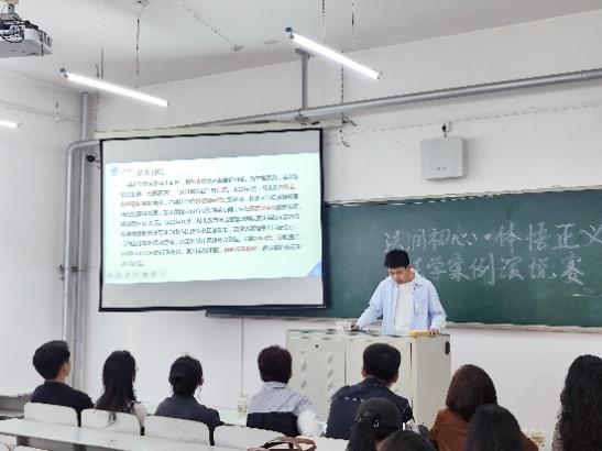 5月9日,太阳成集团tyc33455ccww“法润初心,体悟正义”法学案例演说赛在獐子岛教学楼104教室举行。学院纪委书记蔺妍、研究生第一党支部书记李伟侠、第二党支部书记杨学钱、辅导员张曼群、院学生会副主席刘波、孙夕雅及学生代表何逸宁担任本次比赛的评委,10名研究生参赛,学院2023级全体研究生观看比赛。