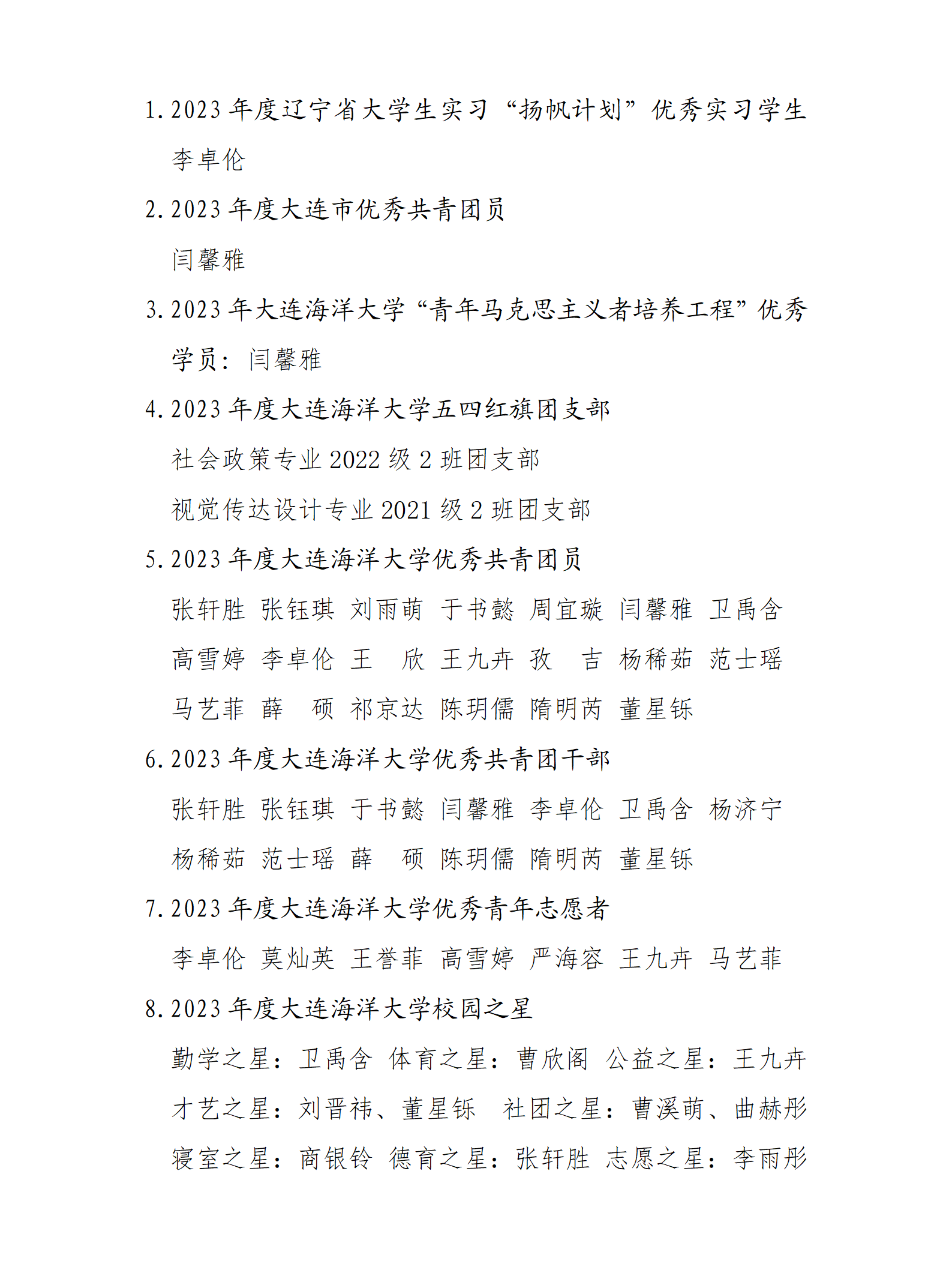 近日,太阳成集团tyc33455ccww学生在“强国担使命 挺膺正青春”tyc33455cc太阳成集团纪念五四运动105周年青春汇报表彰大会中荣获多项荣誉。