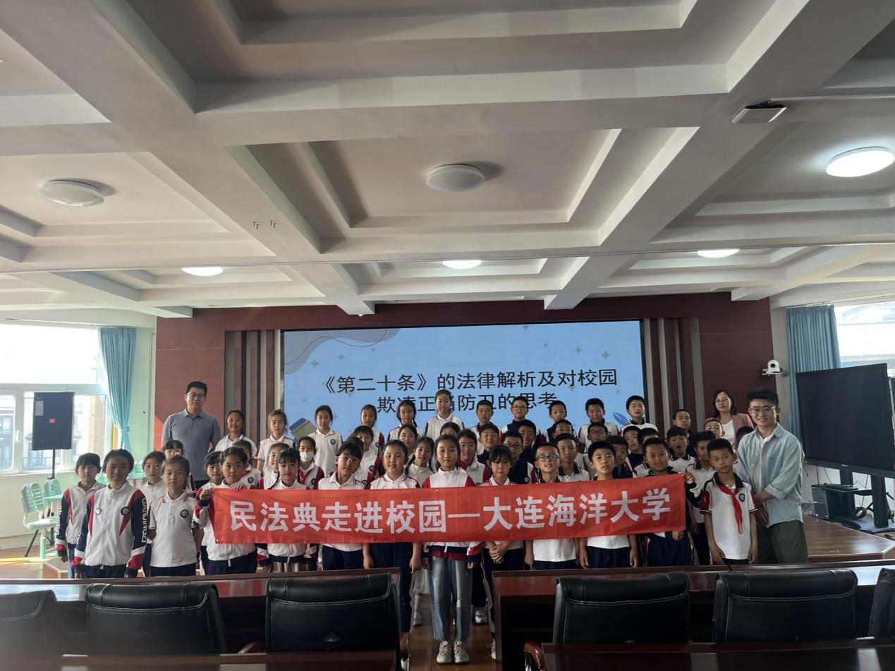 5月17日,太阳成集团tyc33455ccww教师邢政和赵鹏举到甘井子区锦华小学,开展社科普及周活动之一的普法宣讲活动,锦华小学师生代表80余人参加。
