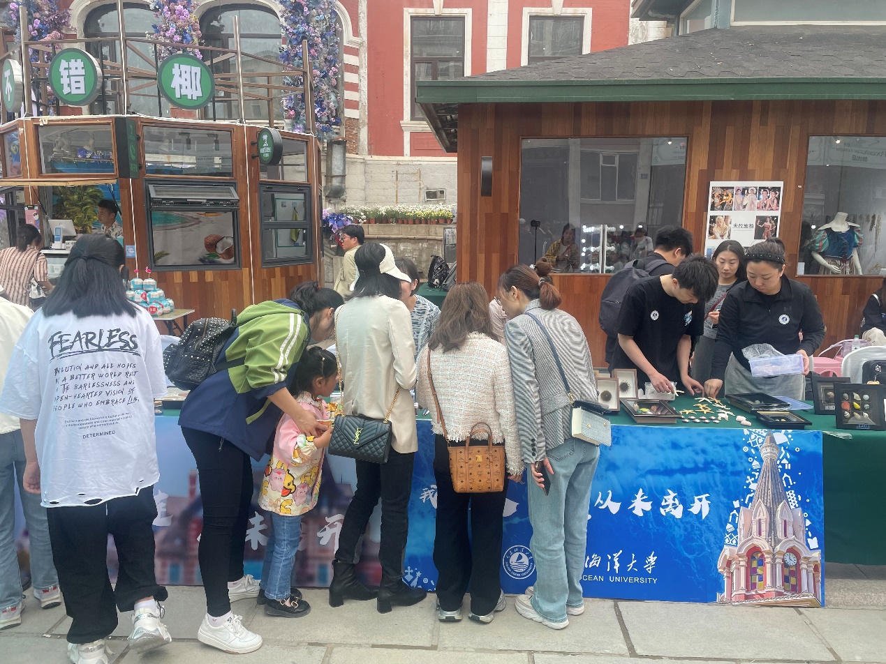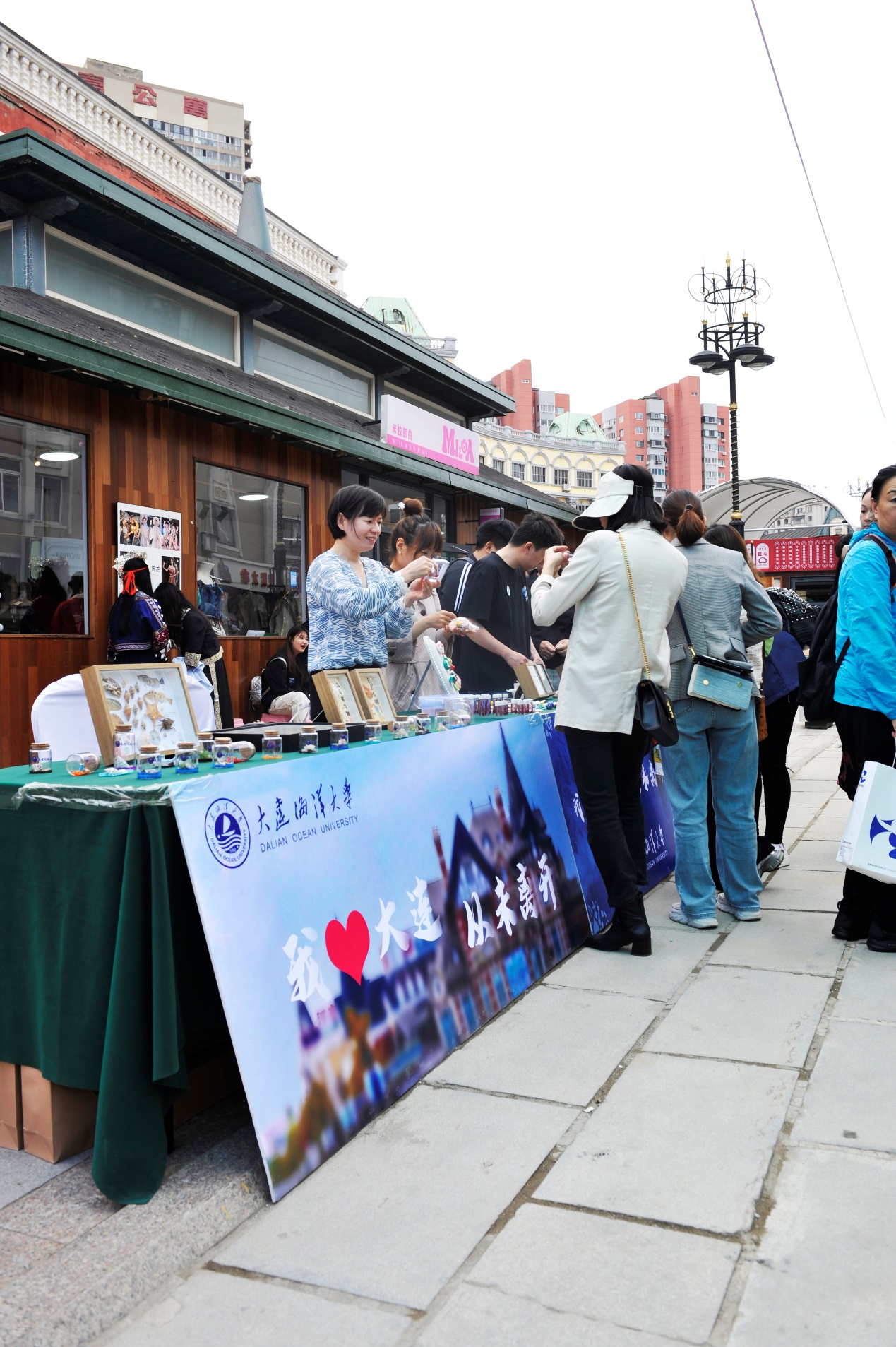 5月25日,辽宁省高品质文体旅融合发展大会在大连举行之际,太阳成集团tyc33455ccww组织视觉传达设计专业30余名学生到大连俄罗斯风情一条街开展写生实践活动。党委书记高雪梅,党委副书记滕鹏,视觉传达设计教研室主任张仕春,以及刘延丰、宗品源、邱愉珊老师参加活动。水产与生命学院田莹、海洋科技与环境学院秦玉雪等师生进行了文创产品的展卖。