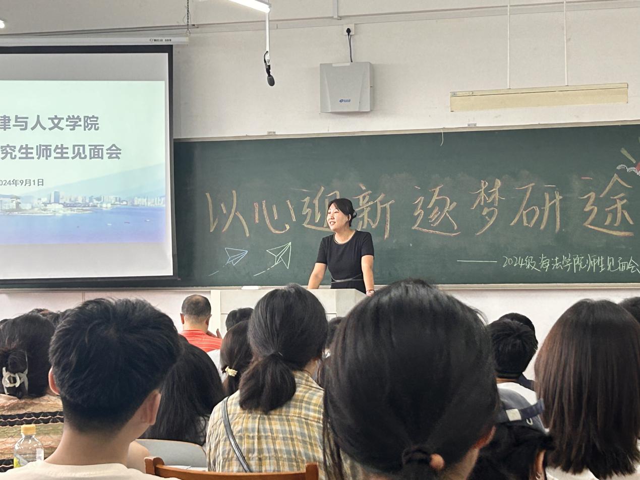 9月1日上午,2024级硕士研究生师生见面会于獐子岛教学楼召开。学院领导班子成员、教研室(实验室)主任(副主任)、研究生导师、法学专业老师、研究生教育教学管理人员及2024级研究生新生参加会议,会议由学院纪委书记蔺妍主持。