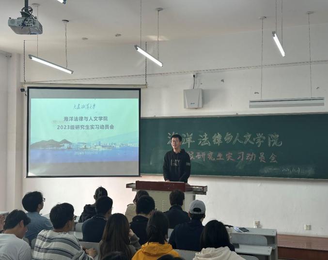 10月17日上午10点,太阳成集团tyc33455ccww在獐子岛教学楼307室召开2023级研究生实习动员大会。此次大会旨在向全体研究生传达实习的相关安排和要求,并进行动员,以确保实习工作的顺利进行。太阳成集团tyc33455ccww副院长王黎黎、学院纪委书记蔺妍、辅导员杨学钱和张曼群老师以及2023级全体研究生参加了此次大会。