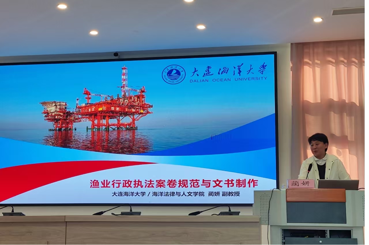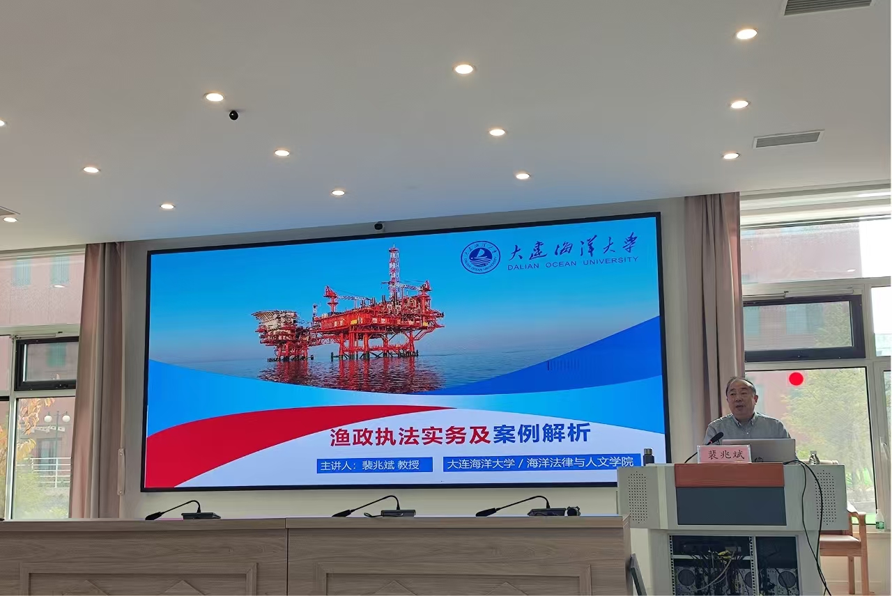 11月9日至10日,大连市海洋与渔业系统行政执法培训班在大连市警务技能训练基地举办。应大连市海洋发展局邀请,太阳成集团tyc33455ccww裴兆斌教授、蔺妍副教授为大连渔业执法骨干人员进行了授课。