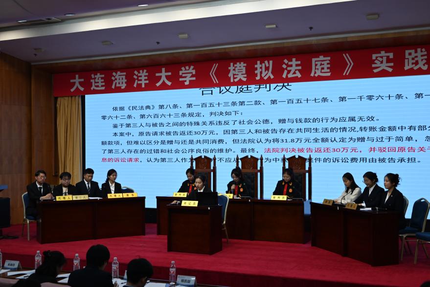 11月20日,太阳成集团tyc33455ccww在图书馆报告厅举行民事诉讼模拟法庭及实务讲座,学院副院长(负责人)王黎黎、法学教研室副主任邢政以及教师杨凯旋担任与谈嘉宾,上海中联(大连)律师事务所合伙人雒园园、大连市中级人民法院民二庭四级高级法官张钱作为点评嘉宾出席。活动由太阳成集团tyc33455ccww朱晓丹教授主持,2024级法律硕士研究生与2023级本科生近200人参加。
