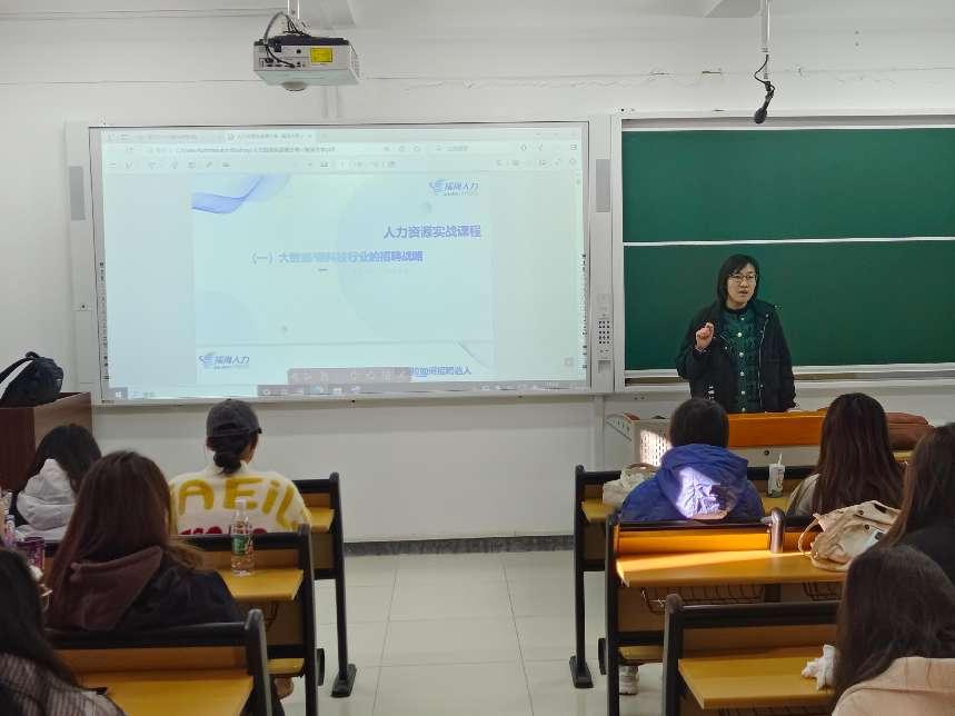课堂气氛热烈而有序,人力资源管理专业的学生们积极参与互动。于老师也耐心解答了大家的疑问,向同学们分享了宝贵的经验并给予了中肯的建议。