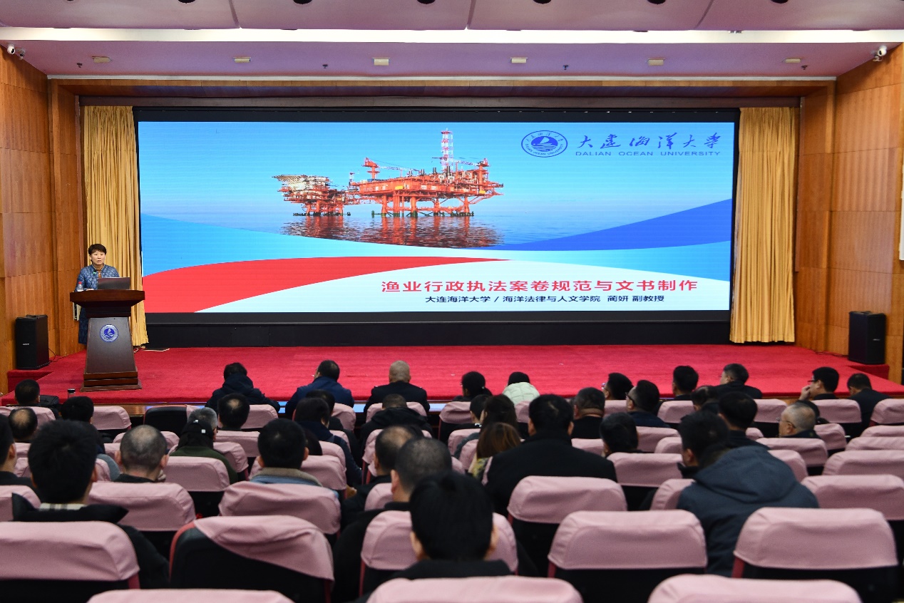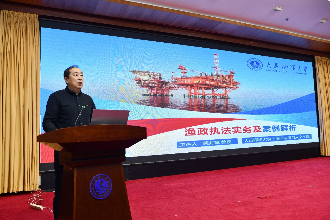太阳成集团tyc33455ccww裴兆斌以《渔政执法实务及案例解析》为题,围绕管辖、法律适用、处罚对象、违法行为认定、执法措施、行刑衔接等六个方面进行讲解,通过分析典型案例,深入浅出地解决渔政执法实务工作中的难题。