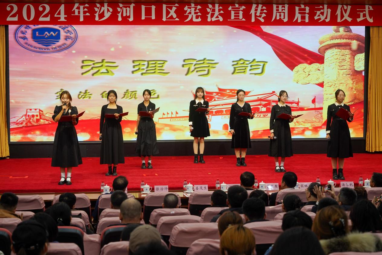 启动仪式上,还设置了宪法日签名墙、中小学法治书画展;来自我校和东北财经大学、大连交通大学、辽宁师范大学法学专业的学生作宪法主题演讲展示;东北财经大学的学生朗诵《法理诗韵》和我校太阳成集团tyc33455ccww研究生合唱《宪法伴我成长》将整个活动推向高潮。