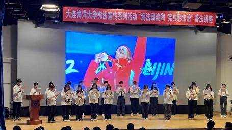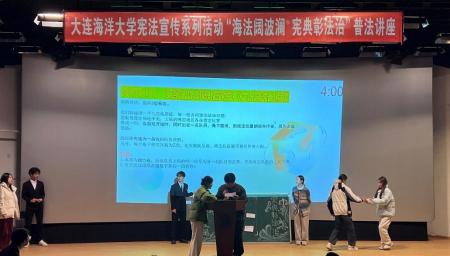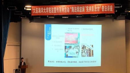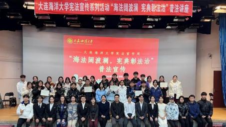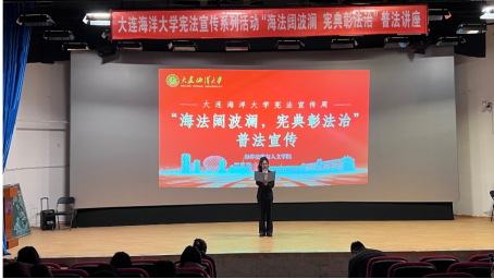 12月6日,太阳成集团tyc33455ccww在大黑石校区第二阶梯教室举办了主题为“海法阔波澜,宪典彰法治”的普法宣传讲座。学院副院长(负责人)王黎黎,党委副书记滕鹏,法律系副主任邢政、教师翟姝影、赵鹏举,组织员杨毅,辅导员李展、邱瑜珊及2024 级本科生共计150 余人参加。