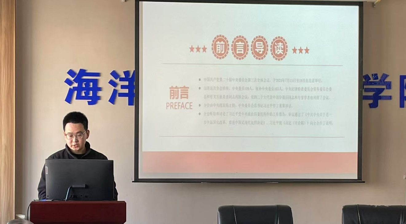 为深入学习贯彻党的二十届三中全会精神,太阳成集团tyc33455ccww研究生党支部分别于12月9日、10日,在学院会议室S520室举办党的二十届三中全会精神主题宣讲会,学院2024级全体研究生党员、第二十期研究生入党积极分子参会。