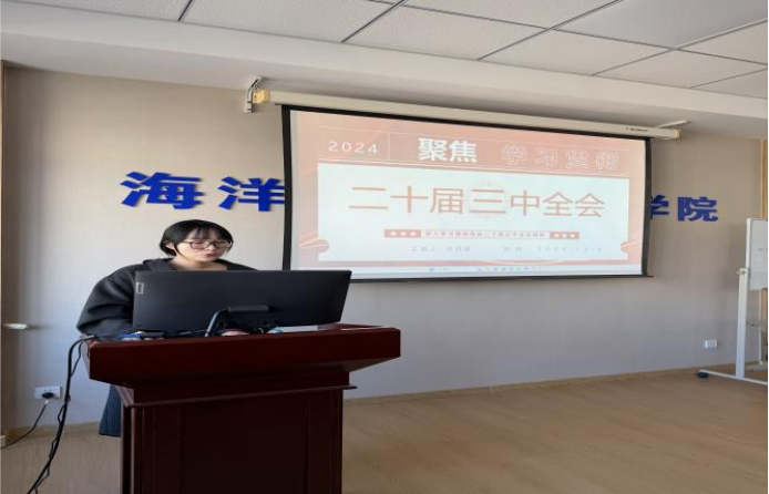 我院研究生宣讲团成员2023级法律(法学)专业田宝琪同学,面向第二十期研究生入党积极分子以《聚焦学习贯彻党的二十届三中全会》为题,围绕全面深化改革的总目标、对大会贯彻的原则以及全会的七个聚焦进行了阐述。