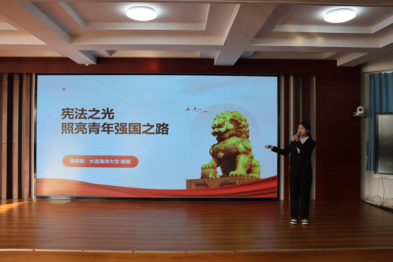 二年级的小学生们以清澈童声诵读诗歌《宪法的颜色》,展现他们眼中宪法的模样。研究生薛颖以“宪法之光,照亮青年强国之路”为题进行演讲,生动诠释宪法精神,让法治力量直抵人心。大小学生同台共唱宪法主题歌曲《宪法伴我们成长》,将现场气氛推向高潮。