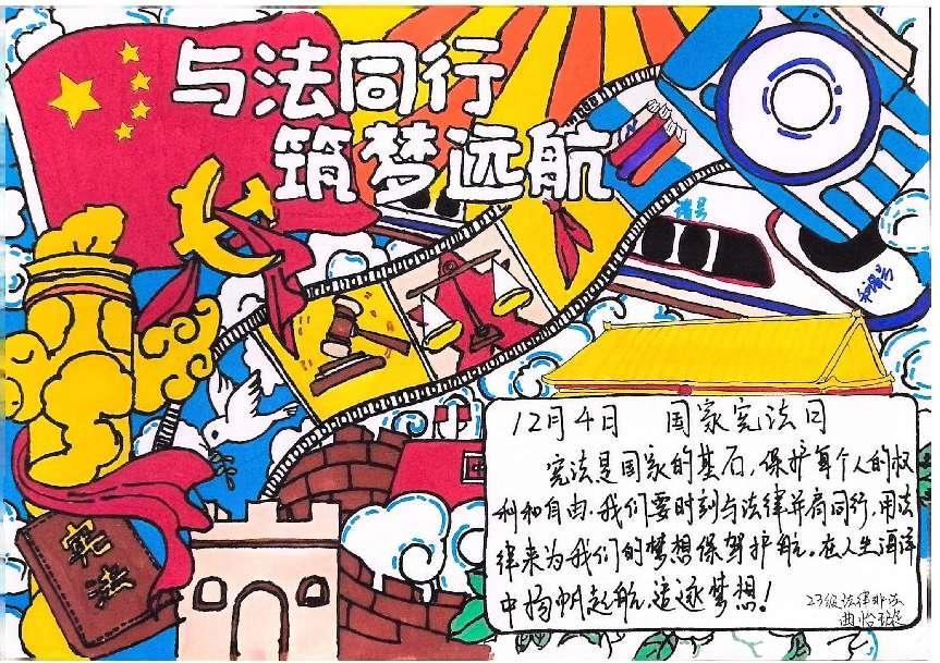 《与法同行,筑梦远航》 手绘海报 曲怡璇 法律(非法学)硕士2023
