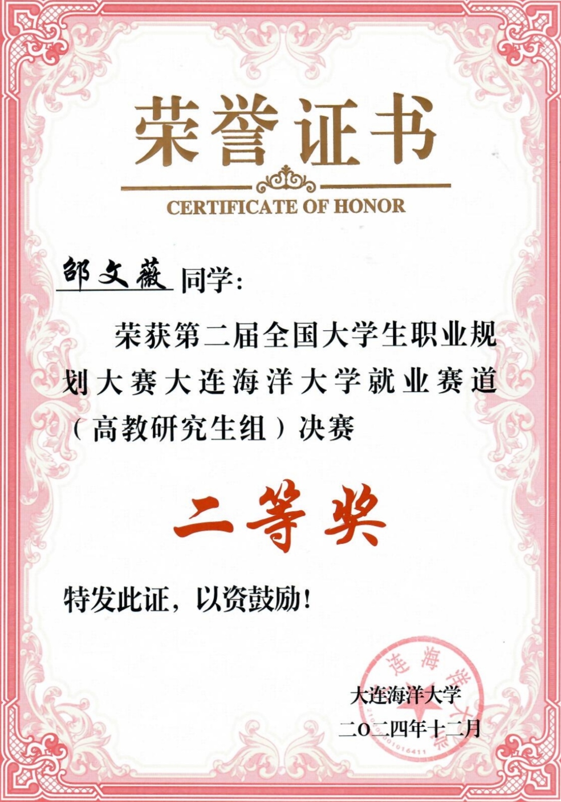 就业赛道 | 二等奖 | 邵文薇 | 法律(非法学) | 2024级 | 研究生组 |