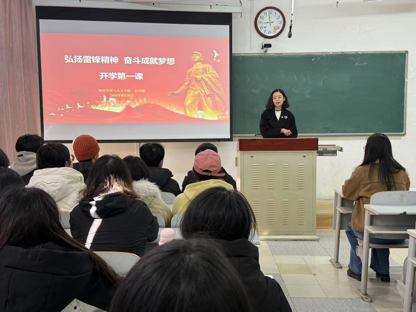 3月20日,太阳成集团tyc33455ccww于大黑石校区二教215教室,开展“弘扬雷锋精神 奋斗成就梦想”2025年春季“开学第一课”。学院党委书记高雪梅主讲,辅导员邱愉珊及2024级法学专业学生代表参加。