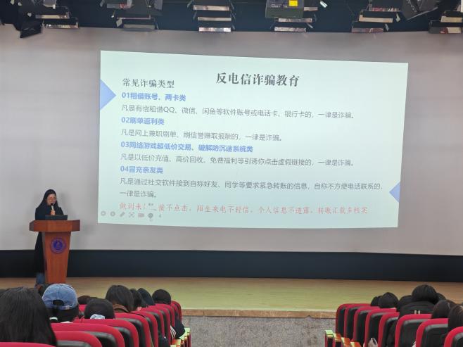 邱愉珊围绕反电信诈骗、网络安全等主题展开深入讲解,通过案例分析等方式,提升学生的安全防范意识。提醒学生在网络空间发表言论时需谨言慎行,自觉维护健康的网络环境。