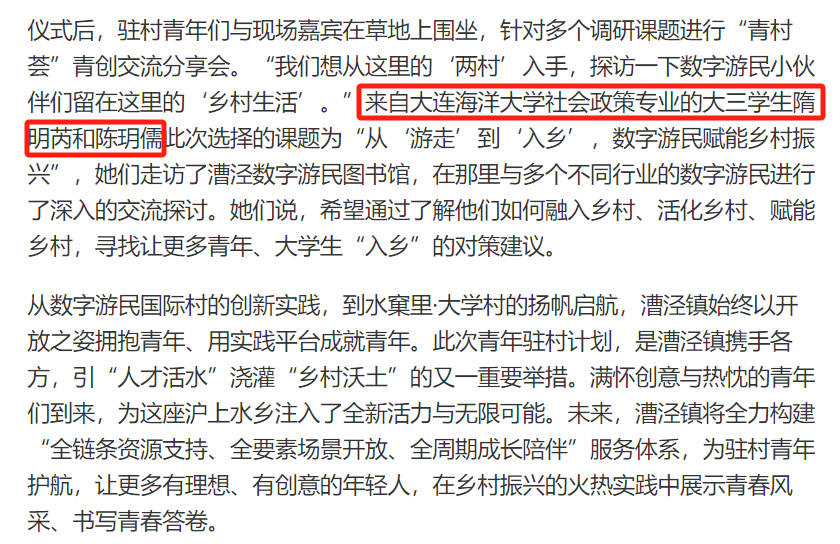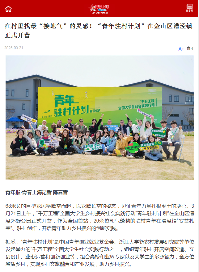 3月21日,人民网、《青年报》等多家媒体报道了“千万工程”全国大学生社会实践行动“青年驻村计划”,并对参加活动的我院社会政策专业大三学生隋明芮和陈玥儒进行了采访。