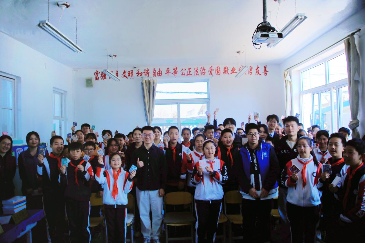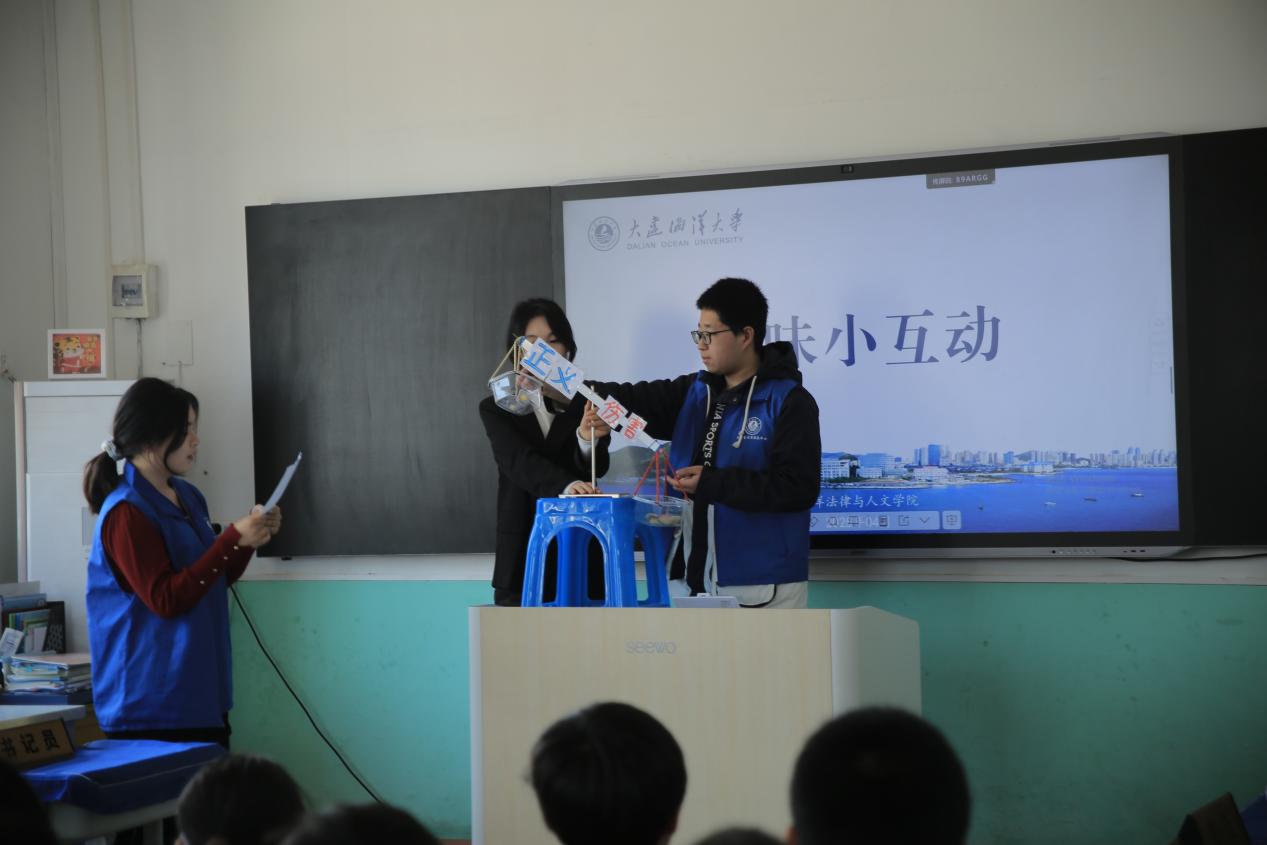活动伊始,秦振蕾同学以“反对校园霸凌·守护少年的你”为主题进行普法授课,结合真实案例深入浅出地解析相关法律知识,引导学生树立正确的法治观念,增强自我保护意识;随后的“模拟小法庭”情景演绎环节,由学生扮演司法角色还原典型案例,沉浸式体验司法审判流程,在互动中加深青少年对法律的理解与敬畏;活动中还设计了“天平正义”趣味互动环节,通过模拟不同应对方式对校园霸凌事件的影响,中心成员向学生们传递“勇敢发声、拒绝沉默”的积极意义;活动最后,中心成员们为师生分发纪念品并合影,多样化的普法形式获得校方师生的一致好评。