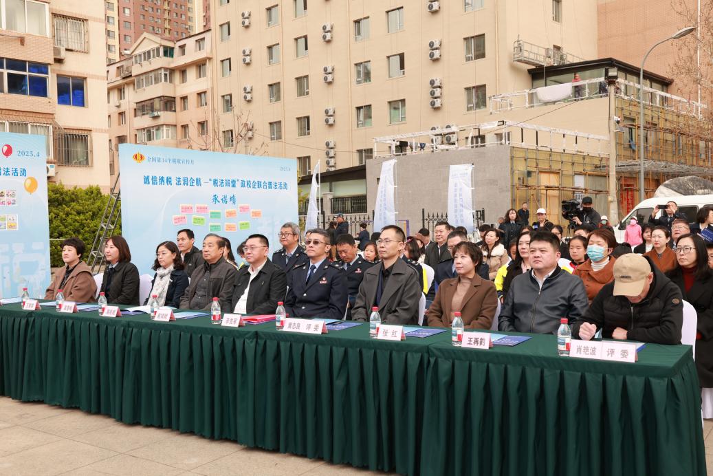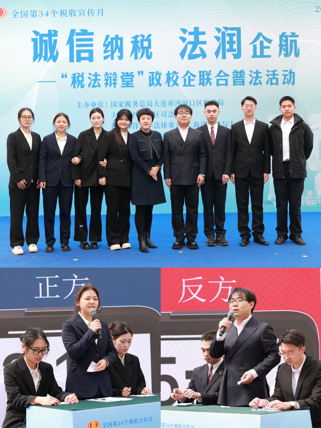 为营造公平公正的税收法治环境,积极推动企业合规经营,4月18日,在第34个全国税收宣传月期间,沙河口区税务局紧紧围绕“税收·法治·公平”主题,作为牵头单位联合我校以及沙河口区委政法委、区司法局、区工商联、星海湾街道解放社区等多部门,在大连税收法治主题公园开展“诚信纳税 法润企航——‘税法辩堂’政校企联合普法活动”。