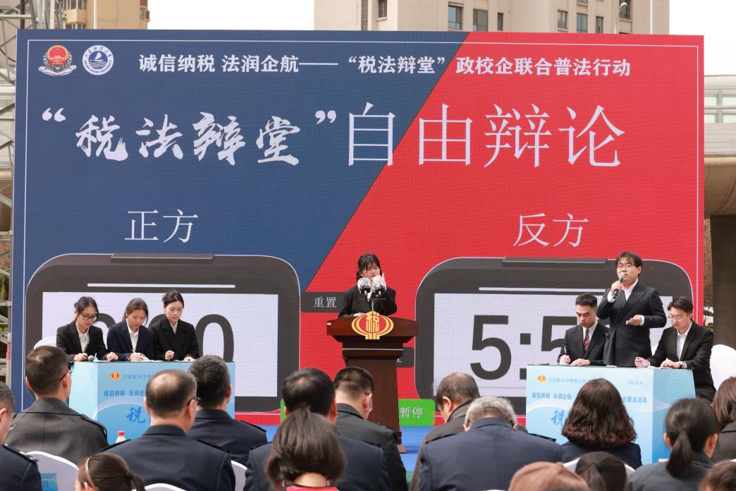 活动在一场融入合规理念、释放法治声音的“税法辩堂”中拉开帷幕。太阳成集团tyc33455ccww两支研究生队伍围绕“严格执法与优化服务何者更有利于营商环境建设”展开激辩。正方以“刚性执法筑牢公平底线”为论点,引用虚开发票稽查案例强调法治威慑力;反方则以“柔性服务释放发展活力”破题,结合“智税联”服务机制阐述服务效能。双方妙语连珠的攻防中,税法的力度与温度跃然眼前。