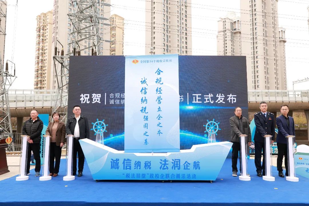 活动现场,大连市税务局、沙河口区税务局与沙河口区委政法委、区司法局、区工商联及我校联合发布了“合规经营 诚信纳税”倡议书。辖区企业代表分享了在合规经营、诚信纳税方面的实际行动以及带来的正向作用,来自抚顺街小学的“小税法宣传员”分享了收获与成长的故事。最后,辛先军局长作总结讲话,希望全社会协同发力,拓展深化共治格局,携手营造公平法治的营商环境。