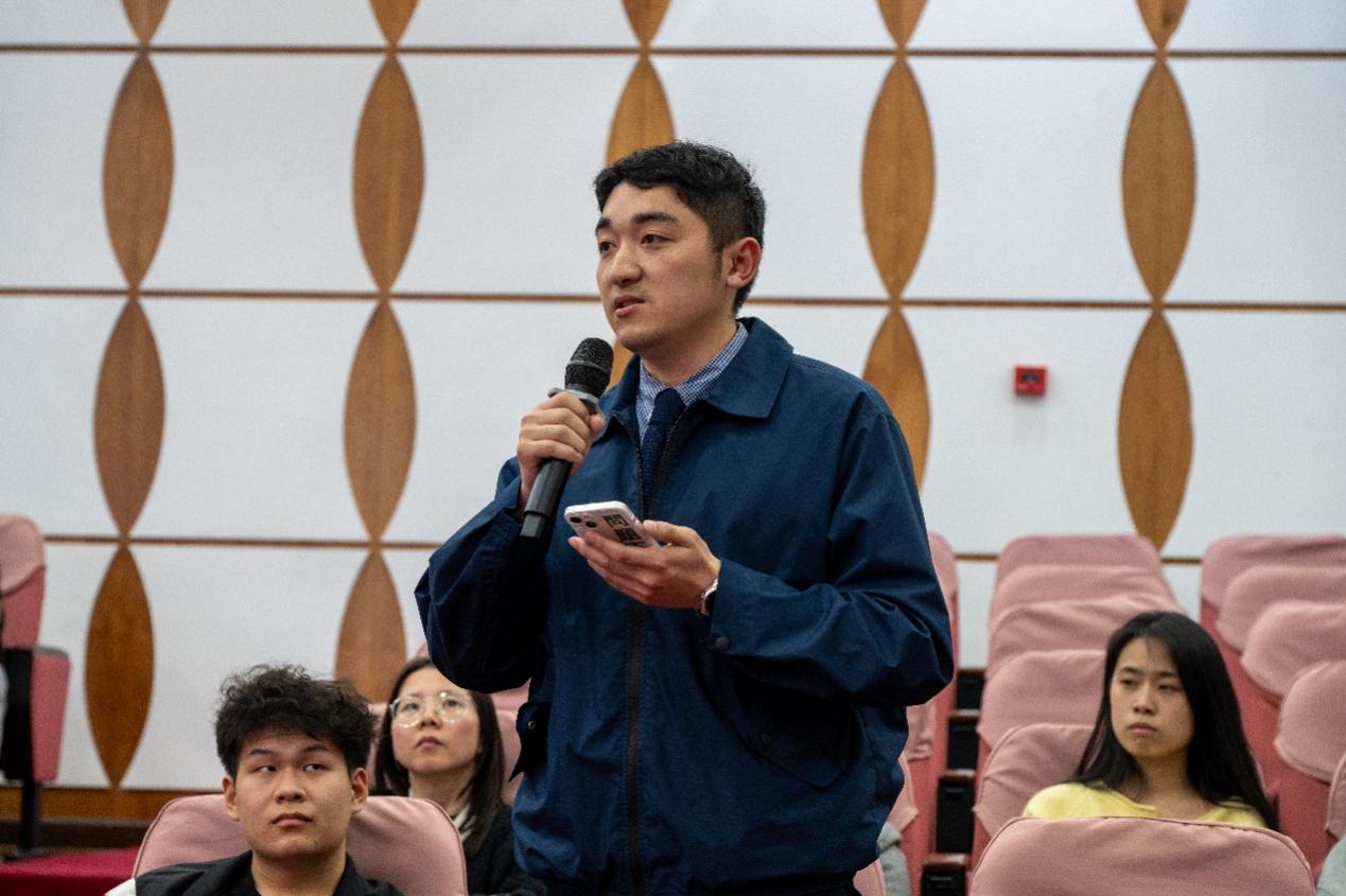 在嘉宾与谈和互动问答环节,丁金军、王少琨和裴兆斌三位专家围绕讲座主题,分享了各自在行政审判和行政法教学科研的工作体会,并与现场同学积极互动,围绕同学们提出的时政热点、日常案例等进行了深度交流。