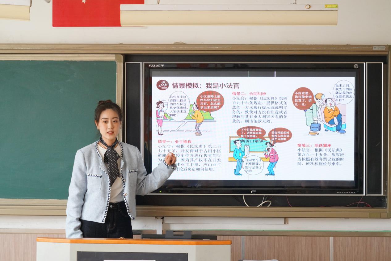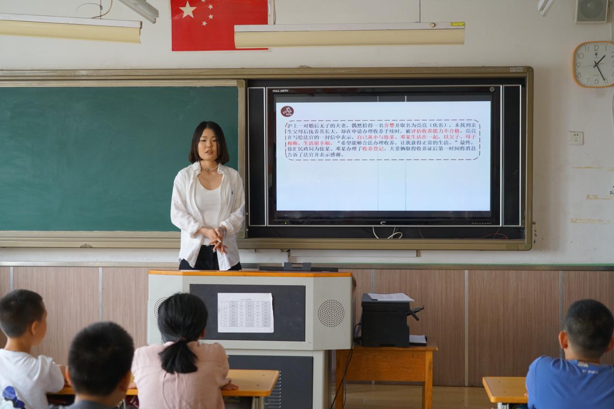活动中,我院普法宣讲团成员分赴各个班级进行宣讲,以“认识民法典”为主线,结合校园生活场景,用案例解读法律条文。从“民事行为能力的划分”到“高铁占座情形”,以浅显易懂的语言,将抽象的法律概念转化为具体的生活智慧,引导小学生们认识到学法、懂法、守法的重要性。小学生们踊跃提问,宣讲团成员予以耐心解答。