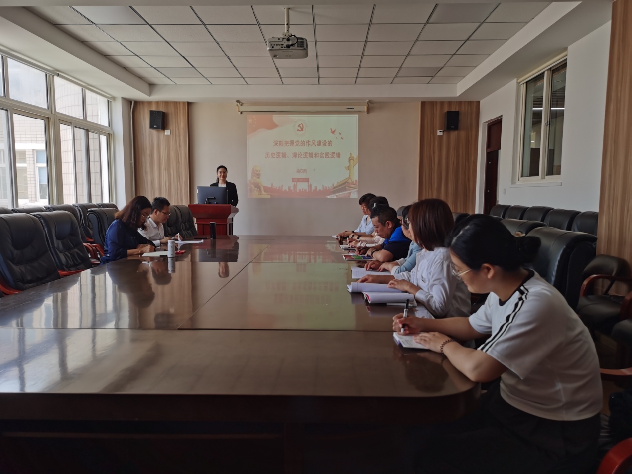 深入贯彻中央八项规定精神学习教育工作,加强党的作风建设,6月18日,副院长曲亚囡以“深刻把握党的作风建设的历史逻辑、理论逻辑和实践逻辑”为主题,为社会学系党支部全体党员讲授专题党课。