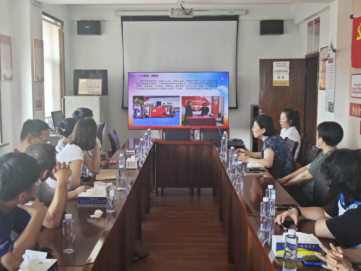 随后,团队一行调研了长海县回龙村委会,梁燕书记进行了工作经验介绍,重点强调了“小燕子调解工作室”的创新模式在化解基层矛盾方面取得的显著成效。