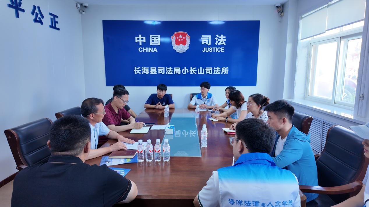 在长海县司法局小长山司法所,我院师生同县司法局有关负责同志开展座谈交流,就《社区矫正法》实施五周年取得的实效以及通过基层矛盾化解案例实行普法等进行了分享。