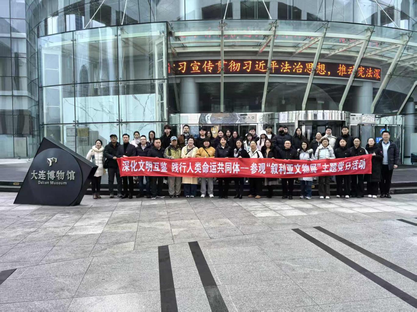 为深入学习贯彻习近平文化思想,深刻把握“文明交流互鉴是推动人类文明进步和世界和平发展的重要动力”核心要义,切实推动党建与业务深度融合,1219日,我院党委赴大连博物馆开展“深化文明互鉴 践行人类命运共同体——参观‘叙利亚文物展’”主题党日活动。学院党委委员和师生党员代表参加。