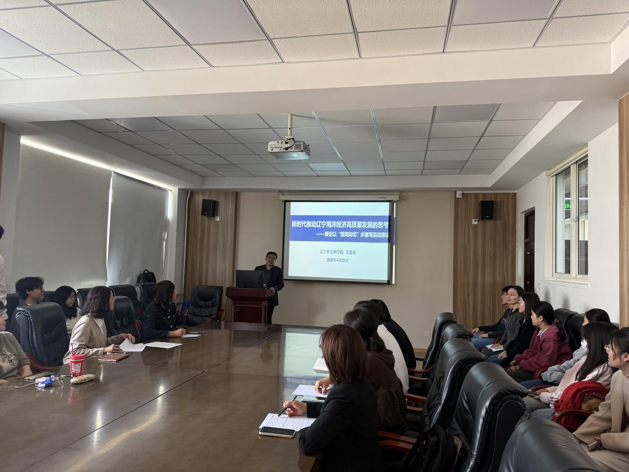 4月22日,我院特邀辽宁社会科学院产业经济研究所所长姜瑞春研究员,做题为《新时代推动辽宁海洋经济高质量发展的思考——兼论以“望闻问切”步骤写咨政建议》专题讲座,我院党委书记高雪梅、院长王黎黎、副院长曲亚囡、纪委书记张仕春,以及师生代表30余人参加。
